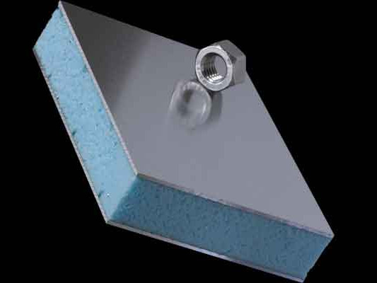 Eine Aluminium-Sandwichplatte besteht aus einem Schaumkern und Deckschichten aus Aluminium. Die Aluminium-Deckschicht hat standardmässig 1.0 mm Stärke und ist in weiss RAL 9010 lackiert. Je nach Anwendung kann aber auch in anderen Legierungen und Stärken gearbeitet werden.