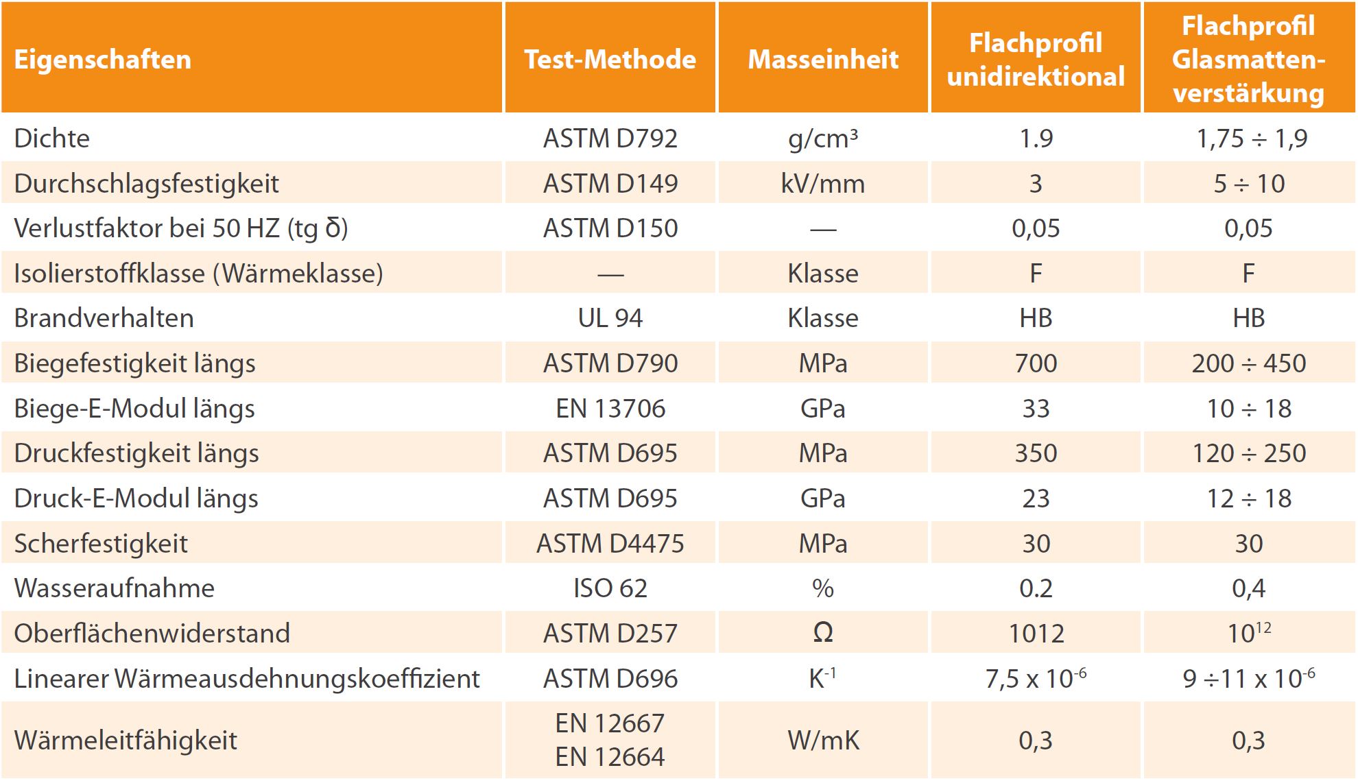 - Mechanische Werte gemäss Glasfaseraufbau.