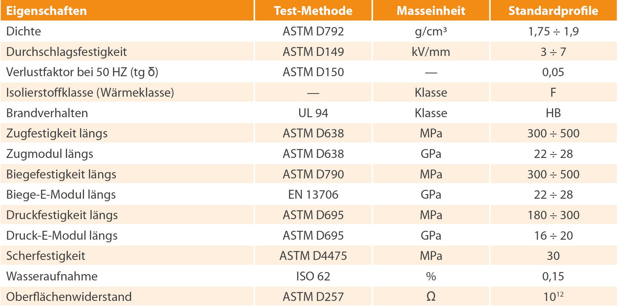 - Die technischen Werte beziehen sich auf glasfaserverstärkte