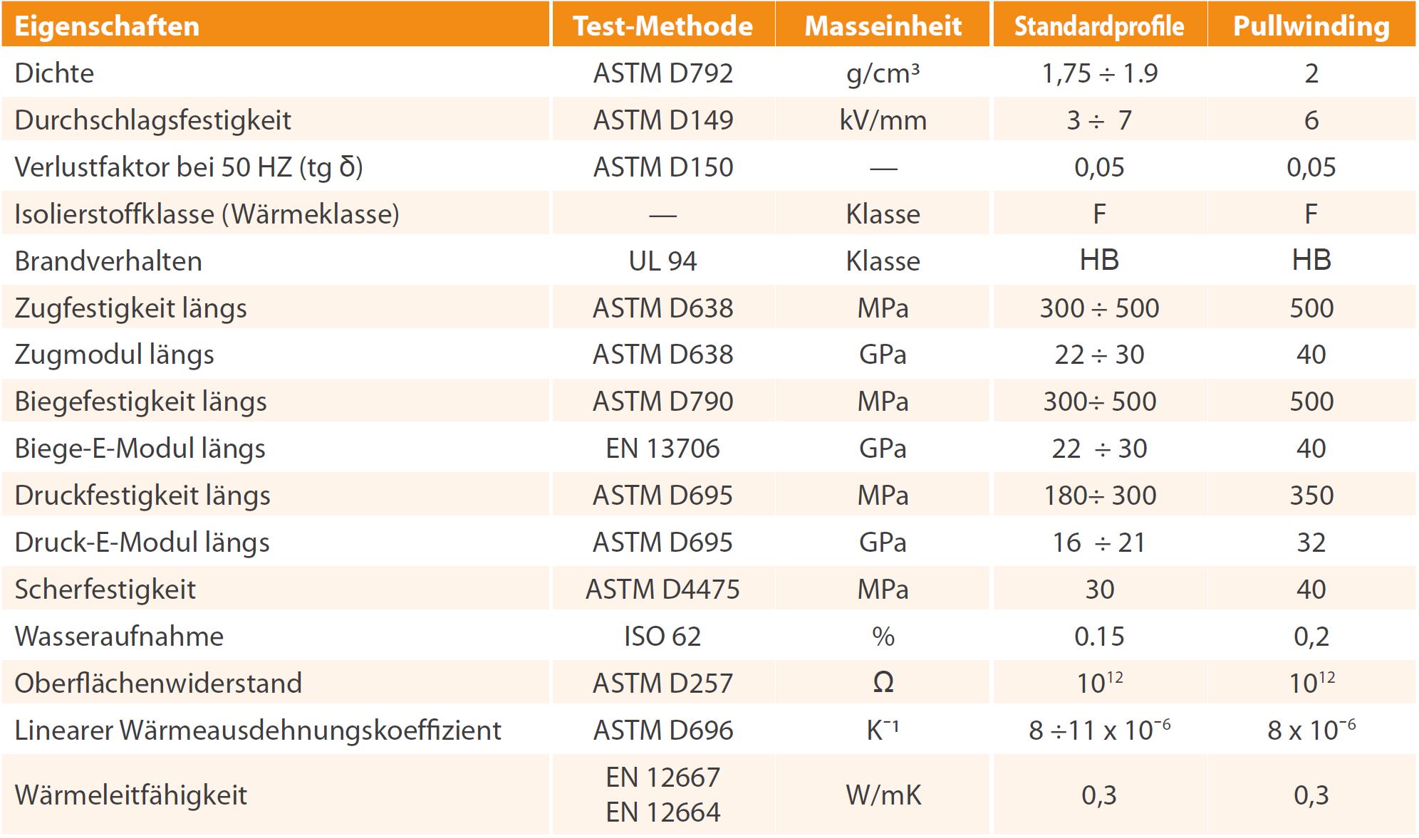 - Die technischen Werte beziehen sich bei den Standardrohren auf Polyesterharz; bei den Pullwinding-Rohren auf Vinylesterharz.