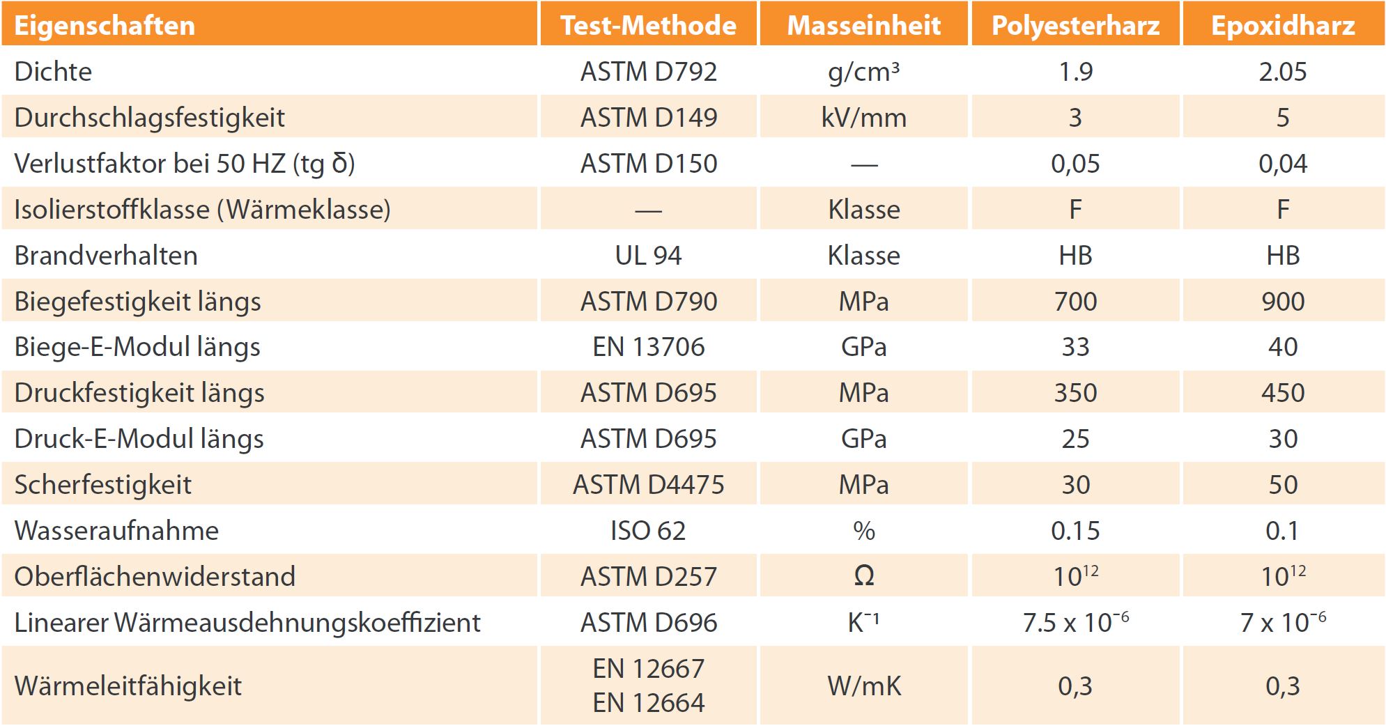 - Die technischen Werte beziehen sich auf glasfaserverstärkte Profile mit Polyesterharz und Epoxidharz.
