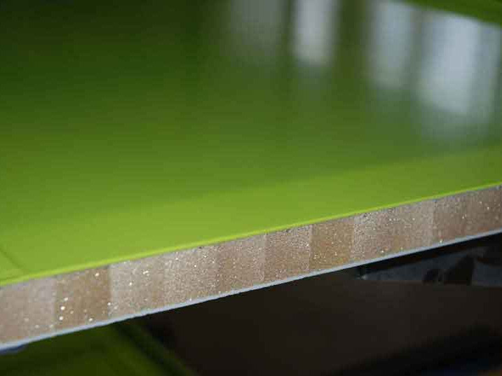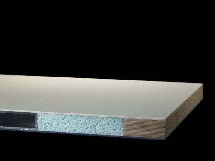Beim Kern lassen sich günstige Varianten von XPS oder PUR-Schaum verarbeiten. Für Bauteile mit längerer Lebensdauer und erhöhtem Festigkeitsanspruch werden PVC-Schäume, PP-Waben oder LE 115 als hochbelastbare Strukturschäume verarbeitet.