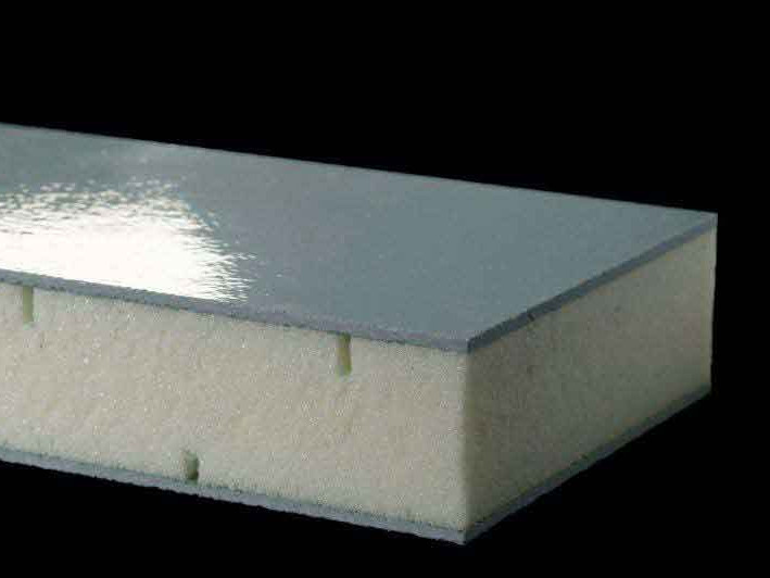 GFK-Sandwichplatten sind eine Kombination aus industriell gefertigten GFK-Deckschichten und einem hochfesten Isolierschaum. Diese beiden Materialien werden mittels hydraulischen Pressen verklebt. Die grösste lieferbare Einzelplatte beträgt 14.000 x 3.200 x 80 mm.